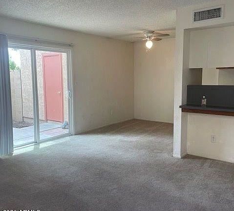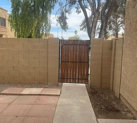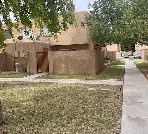 GREAT LOCATION for Mesa Community College, Fiesta Mall, and bus lines. Corner unit. Patio exit door leads to a nice grassy area. Separate laundry/storage room off patio. 3 bedrooms and bathroom upstairs. 2 parking spaces (1 covered and 1 open). Hot water heater replaced in 2020. Short distance to community swimming pool.