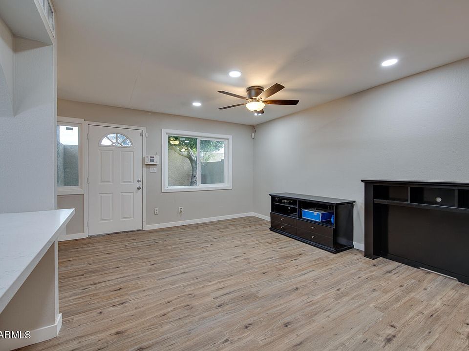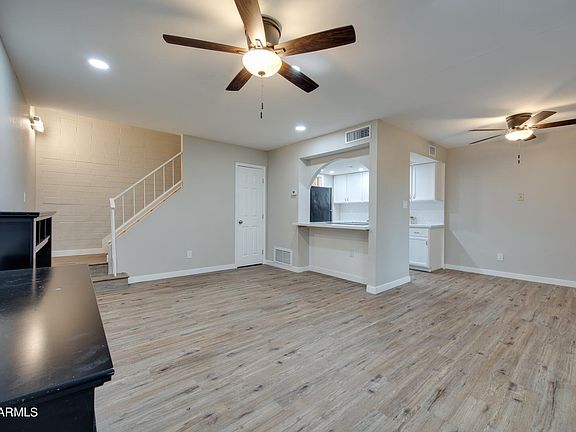 This gorgeous newly remodeled 2 bedroom 1 bathroom townhome is waiting for you! This home is MOVE-IN READY and features a freshly painted interior, new double pane/energy efficient windows, new closest doors, new ceiling fans, and new luxury vinyl plank flooring ALL throughout the home. The kitchen boasts new appliances, quartz countertop, beautiful white backsplash, and recessed lighting. The bathroom is a complete remodel, new shower tub, sink, toilet, and vanity with a quartz countertop and beautiful shaker cabinets! HOA includes water, sewage, and garbage! This condo is minutes away from the central freeways, Mesa Community College, shopping centers, and the Cubs stadium.