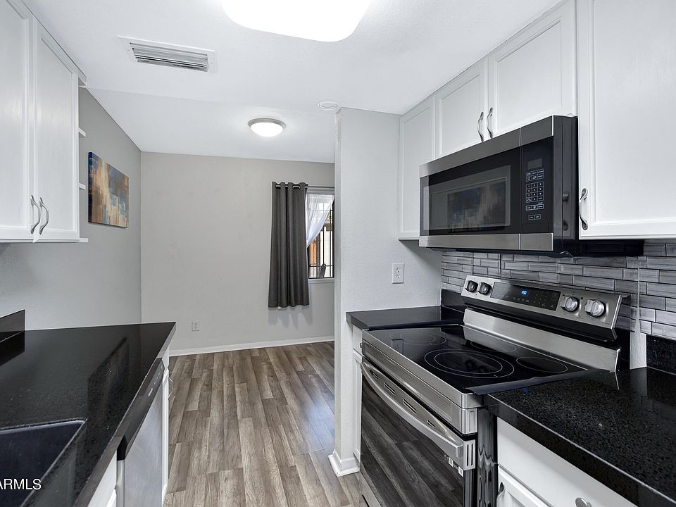 Step into your new home located in the heart of Mesa's coveted Hallcraft Villas subdivision. This delightful 2-bedroom, 1-bathroom residence effortlessly combines modern upgrades with inviting charm. Natural light covers every nook, setting a welcoming tone as you enter this cozy home! The cool-grey color palette imparts a soothing ambiance that flows throughout, and the brand-new flooring reflects sunlight to bring the space together. The kitchen boasts a thoughtful modern redesign that does not sacrifice functionality, featuring polished granite countertops and sleek cabinetry. Nestled in the coveted Hallcraft Villas community, this home grants access to a plethora of amenities and local conveniences, such as parks, shopping, dining, and entertainment. With the redevelopment of the area and the Fiesta Mall, now is the time to acquire a home in this growing area!!