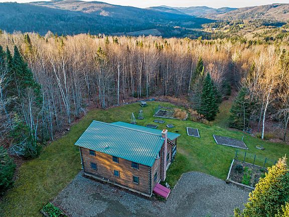 Looking for that rustic log cabin in the Great North Woods, search no further. This well crafted log home is located on 46 acres with direct snowmobile access (trail at back of property) and atv access from the road. In addition, there is an insulated 30ft x 40ft detached garage with a 16ft wide x 12ft high door (just need to add heat source if desired) This home offers beautiful pine floors on the upper level and rustic touches throughout including a bonus room on the first floor that could be used for an additional sleeping area or an office. The front porch offers the potential for expansive mountain views with a limited amount of tree clearing. The full basement is another area that could be finished off with hookup already in place for generator. In addition flower and garden boxes are already set up on property. Located right off a town maintained road but private. A must see!