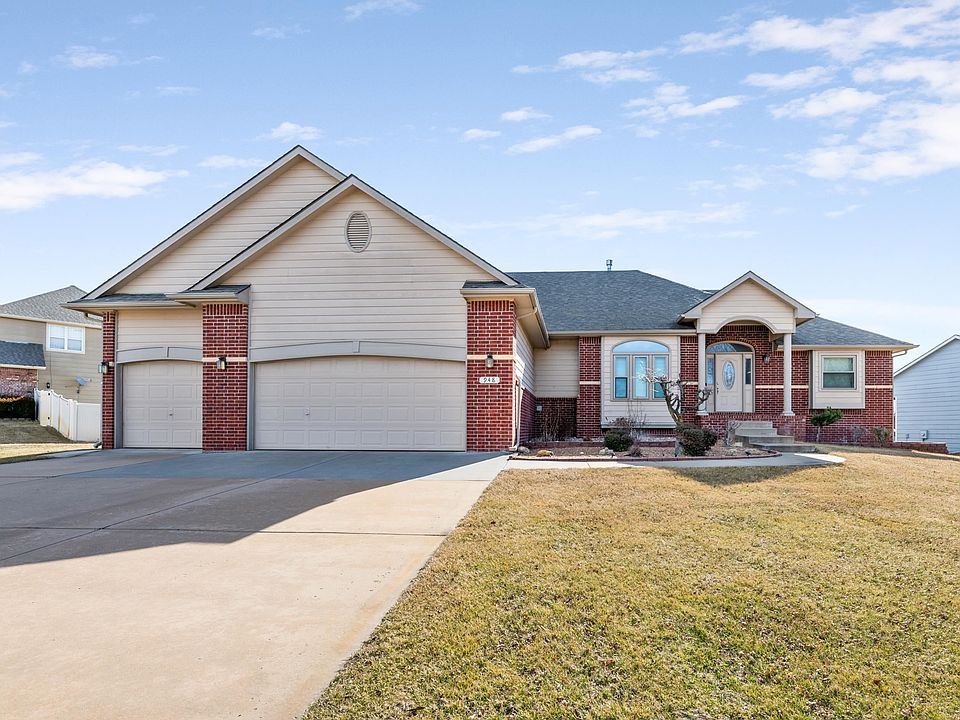 Welcome to this well-maintained, custom-built home by the original owner. "$18,000.00 Price deduction" this 5 bedrooms, 3 and 1/2 bathrooms home, offers a spacious interior with ample room. The layout includes three bedrooms and two bathrooms on the main floor, along with a formal dining room, large living room and a heart room with a gas fireplace. The master suite features a fireplace between the whirlpool and bedroom, and a wet bar . The kitchen includes bar seating and space for a dining table.Tiles and hardwood flooring are on the main level. The basement has view out windows with a huge rec room and family room . Also two additional bedrooms and a full bath, finished with luxury vinyl flooring. Auto attic fan above oversized three- car garages with back overhead doors . Two decks provide relaxation space. Nice landscaping, well water for inground irrigation systems. Located in a quiet neighborhood with easy access to E.Kellogg Ave " US 54", this home blends comfort and convenience. Come out and take a look. You won't be disappointed.