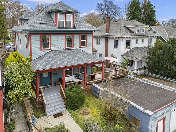 This charming vintage Craftsman in the heart of Buckman Park blends original character with modern updates, offering the perfect opportunity to make it your own. A grand entry and staircase set the tone, leading to a spacious formal dining room filled with natural light. Vaulted ceilings throughout create an airy, open feel, while hardwood floors and built-ins in the expansive living room add warmth and charm. A stunning glass-paneled wall separates the entry from the living space, preserving the home’s original craftsmanship.Recent updates include a brand-new roof (2024), a new garage door for the tandem two-car garage, and a freshly painted front porch. The chimney has also been updated, allowing the opportunity for the fireplace to be reworked for gas or electric use. A fresh coat of paint on the kitchen walls offers a bright and welcoming space to make your own.The home’s flexible layout provides endless possibilities. The first floor features the living room, kitchen, dining room, a full bath, and a mudroom. Upstairs, the second floor offers four spacious bedrooms and another full bath. The third floor is a hidden gem—what the current owner has used as a primary suite—with a finished bonus space and an expansive unfinished storage area that could be transformed to suit your needs. Be sure not to miss it; the staircase door could be mistaken for a closet, so a sign will be placed to guide you.The basement, accessible from both the home and garage, includes a half bath, laundry, and an incredible amount of storage. Plus, don't miss the spacious, fenced yard with deck. With its timeless details, abundant space, and thoughtful updates, this home is ready for its next chapter. Schedule a showing today! [Home Energy Score = 1. HES Report at https://rpt.greenbuildingregistry.com/hes/OR10236379]
