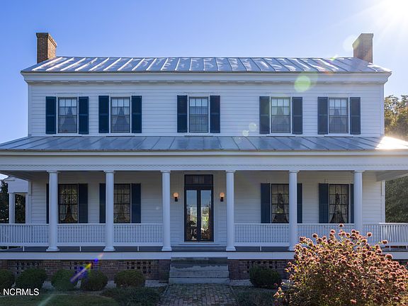 This historic home sits on 8 acres in Bertie County, North Carolina, but the Ashland property does not end there. A custom barn includes overhangs and storage space with interior walls made from reclaimed Cypress. Take a dip in the pool or lounge in the pool house during the summer. This home is built among wooded acreage in a rural location with panoramic views of agriculture from every window. A rare property that far exceeds other historic homes in the area! Location is approximately a 15 minute drive into Historic Edenton.