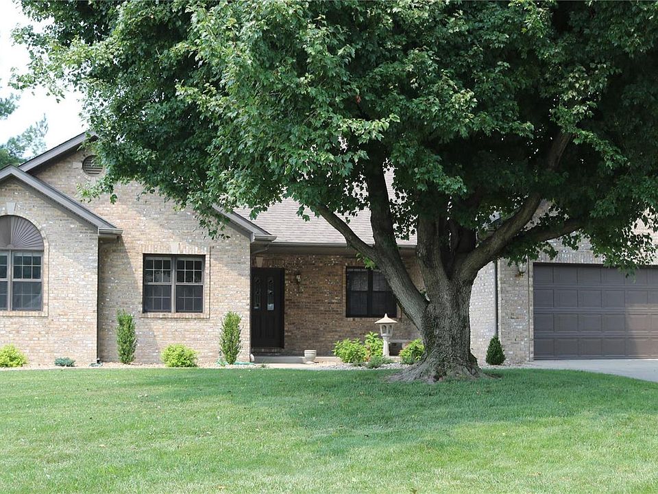 Fantastic curb appeal! Great Location! Outstanding custom built ranch home with two car attached garage & full basement. From the moment you enter this sprawled out ranch you will be delighted to see the open floor plan & 9 foot ceilings throughout. The foyer opens to the formal dining room to the left and living room/den to right. The huge great room has floor to ceiling brick front gas fireplace flanked by windows & a convenient wet bar. The extensive kitchen features an abundance of beautiful cabinets & counter space along with a huge breakfast nook great for entertaining. All appliances stay. Large Master suite has a walk in closet & luxurious bath with separate shower & tub & 2 sink vanity. Oversized guest bedrooms & bath. Enjoy your morning coffee on covered patio over looking your private back yard. Updates include newer roof, HVAC system & professional landscaping. Other features include solid wood doors, Pella windows and intercom system