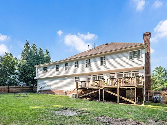 Nestled in a quiet cul-de-sac this stately home features North Raleigh living at it's finest. An abundance of big windows fills the home with bright natural light from front to back, as you enjoy entertaining in your substantial formal dining and living rooms featuring custom moldings, wainscoting and traditional transom windows. Through french doors the custom moldings continue through to a bright and well sized comfortable family room with views of mature trees through large windows. A formal gas fireplace and thoughtful ceiling fan complete the room. With a semi-open floor plan, the main floor offers even more natural light surrounding a good sized casual dining area and nicely appointed kitchen featuring a center island with quartz counters and seating for four. Storage is plentiful with a double-door pantry while attractive subway tile adorns the back splash. The considerably sized 2 car garage enters directly into the kitchen aside a charming half-bath. Newer wide LVP plank floors cover the entire main floor for a continues luxurious appearance and feel. Swathed in newer plush carpeting, the formal entrance rises elegantly as it meets up with another side staircase for dual access to the second story. The large primary suite with wide LVP floors features more custom moldings plus a private view at the treeline, while its well sized primary bathroom offers dual vanities, a large soaker tub plus walk-in shower and large closet. Three other good sized bedrooms all offer generous windows and natural light with large closets plus LVP flooring, while the substantially sized bonus room is cozy with newer carpeting and ready for play, movies and more. Tons of flat storage space awaits in the attic. Out back, the wooden privacy fence surrounds a flat yard up that backs up to spectacular woods, while a big shed stands ready for all of your outdoor storage needs. Just outside the fence is more room for gardening of any kind. Overlooking this oasis is an oversized deck ready for party-goers or just relaxing. As deck access is right off the kitchen, BBQing is a breeze! Too many updates including newer windows, entranceway and appliances to list. If location matters, this exceptional home is under 10 miles to everything Raleigh, including NC State, RDU, RTP, Downtown, North Hills, Crabtree Valley Mall, Oberlin Village and more.
