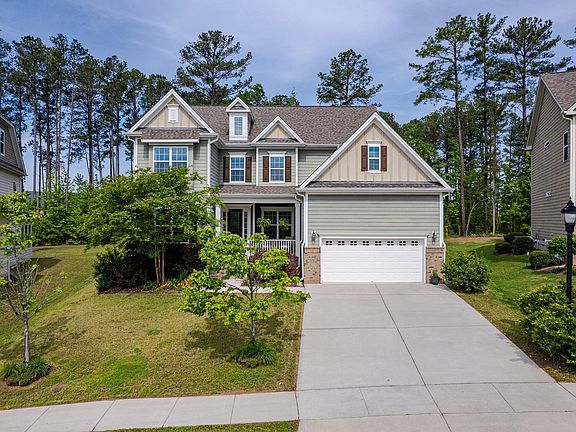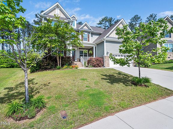 Stunning 5 bed 4.5 bath home in highly desirable West Cary locale. Fresh interior paint. Hardwood floors throughout most of 1st floor. Spacious family room features gas log fireplace. Large formal dining room includes granite top built-in cabinets. Bright & open eat-in kitchen offers granite countertops, massive center island, subway tile backsplash, stainless steel appliances (gas cooktop), under cabinet lighting & farmhouse sink. Generous walk in pantry. Sunny breakfast area. Office nook with built-in desk. Fantastic sunroom/flex space. 1st floor guest suite. Expansive primary suite has trey ceiling, granite top dual vanities, deep soaking tub, oversized tile shower & 2 walk in closets! Home is equipped for ATT Fiber, Google Fiber and has CAT6 wired throughout. Covered porch overlooks beautiful backyard with brick patio/firepit & garden area. Nice wooded buffer in back. Steps to Weldon Ridge greenway. Pool community. Extremely convenient to the American Tobacco Trail, Thomas Brooks Park, I-540, RTP, RDU and plenty of great shopping & dining options.