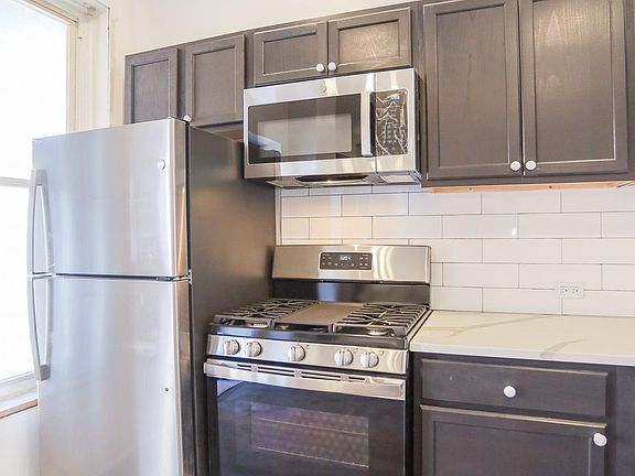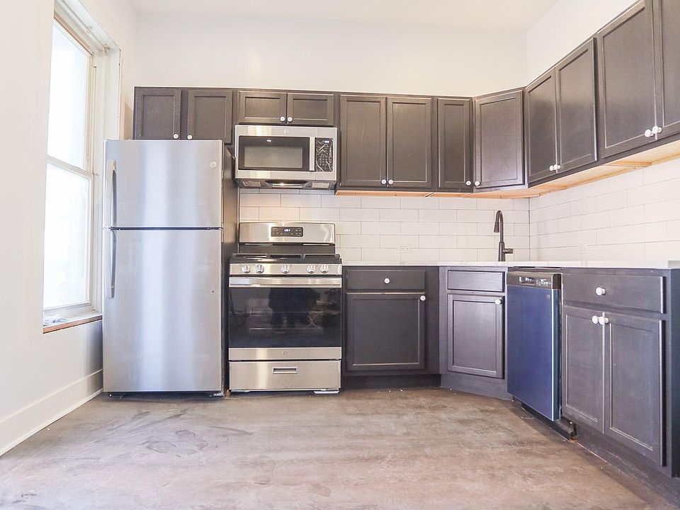 Massive NEW 2 Bedroom unit located in the heart of Wrigleyville. Brand new rehab features new Kitchen with black cabinets, granite counter tops, and stainless steel appliances. Gray laminate floors throughout. Living Room with decorative fireplace. Formal Diing Room. And eat-in kitchen. In unit washer and dryer. Central Heating and AC. Unit getting NEW WINDOWS (not shown in photos). Steps away from Red Line stop, No security deposit - $300 Move in Fee per Person. Pets welcome - Cats $150 | Dogs $300 pet fee. 1 Month Free on 16 month lease breaks down to $2625/month. Lease will read $2800