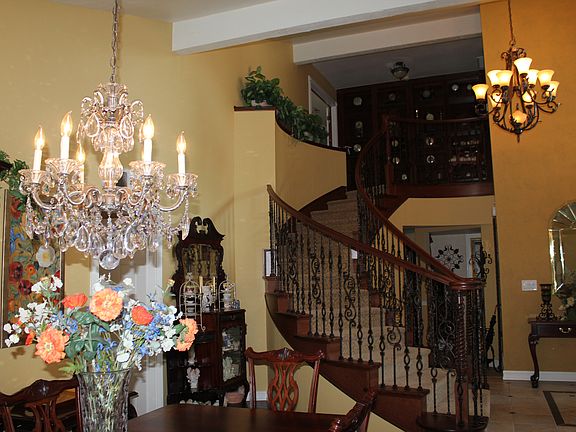 Beautiful Custom Built 5 bedroom 3 full bath two story home HAS SOLAR! Stunning entry with grand curved stairway overlooking the entry and living room and formal dining area; hall and kitchen, gorgeous wood flooring. Big Family room has a full raised hearth fireplace, Spacious gourmet kitchen with massive island, separate kitchen nook with beautiful cabinetry. Master bedroom with an attached office, Walk out of the masterbedroom onto a balcony overlooking the swimming pool and hot tub, large jetted tub with separate shower in master bath, large walk in closet, RV access, lots of concrete with a basket ball hoop. Front and back yard is fully landscaped with lots plants, trees and brick work, wrought iron gates for RV access.Three car garage with custom cabinet for storage... photos to be updated soon to show newest improvements...your gonna love it!