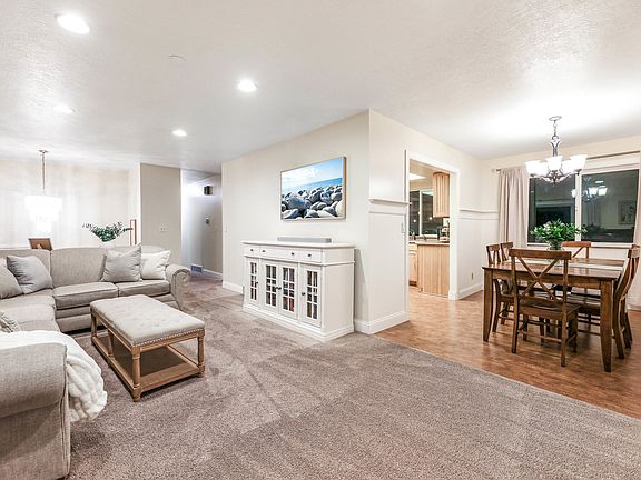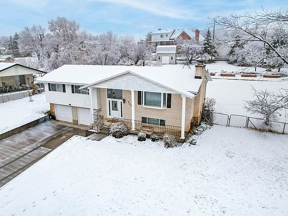 Darling south-facing home in Pleasant View on a spacious 1/2 acre lot with stunning mountain views, located in a quiet neighborhood near excellent schools, parks, and trails, plus quick access to I-15. Enjoy the beautifully updated interiors featuring a spacious living room with a cozy fireplace and large windows that fill the space with natural light. The kitchen boasts abundant cabinetry, gorgeous hardwood cabinets, granite countertops, and new range and dishwasher. You'll love the built-in desks with ample storage and the large separate dining room. The master suite includes a master bath and his-and-her closets, along with two additional bedrooms and a bath upstairs. Downstairs, you'll find a generous family room perfect for gatherings, another large bedroom, and a convenient 3/4 bath. The private, fully fenced backyard is an absolute delight, featuring a large covered patio, beautifully landscaped yard, and a brand-new 12x16 shed, making it ideal for enjoying shaded summer evenings in your own oasis. With a new roof (2020) and new AC (2020) this home checks all the boxes!