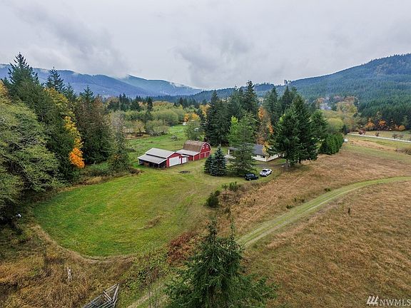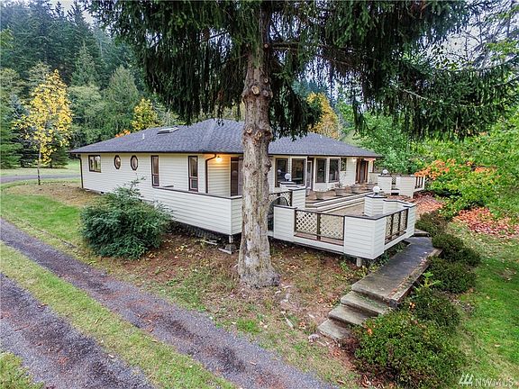 Very private and quiet 4 acre piece with 1700 sq ft rambler and two large outbuildings. A large barn and a large shop (with 1/2 bath) and storage upstairs. The home has high quality wood windows and a view from the large deck of the surrounding hills. Backs to capital forest and is mostly fenced with a gated entry and a seasonal creek near the driveway. the neighbors have cows and horses. This is a unique opportunity to own a beautiful property with substantial buildings. 3BR 2.5BA.