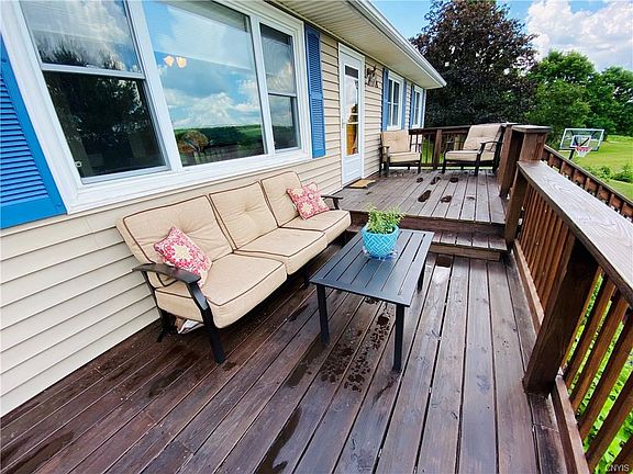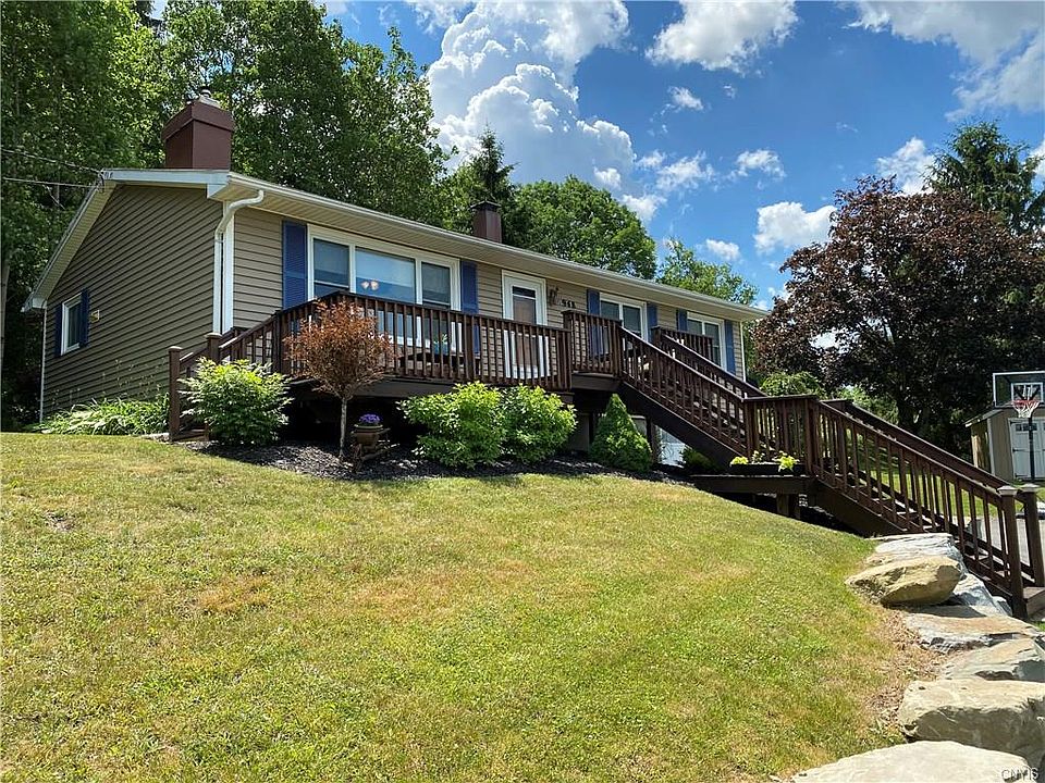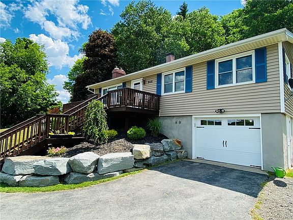 Welcome to this completely updated 3 bedroom 2 full bath home located just outside the Village of Homer. You will appreciate the beautiful setting and landscape from the second you pull into the driveway. You walk up the stairs to the tiered front deck overlooking the panoramic view. From the front door you enter into the spacious living room with gas fireplace. The floor plan flows into either formal dining room or into the kitchen with solid surface countertops. The sliding glass door from the dining room leads out to the backyard with patio and firepit, perfect for entertaining. The square footage doesn't include the finished family room or bathroom in the lower level. This offers an additional 400+ square feet. The lower level family room features an additional gas fireplace and a bonus playroom/study. Don't miss out on this great opportunity to place this property your home.