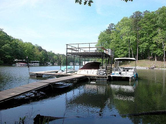 FIRST TIME ON MARKET- ORIG OWNERS! DEEP WATER AT END OF DOUBLE SLIP DOCK W/ PARTY DECK, BEAUTIFUL VIEW, GENTLE SLOPE TO LAKE- NO STAIRS! WRAP AROUND PORCH. GREAT VIEWS FROM EACH LEVEL OF HOME, QUIET COVE. TWO AND A HALF CAR GARAGE PLUS STORAGE ABOVE- COULD BE FINISHED FOR HOME OFFICE. WELL MAINTAINED HOME WITH MASTER ON MAIN AND 2ND MASTER IN TERRACE LEVEL (OR CONVERT TO REC ROOM, BUNK ROOM). 2 ADDITIONAL BDRMS UP PLUS FULL BATH. NEIGHBORLY COMMUNITY. FORSYTH COUNTY TAXES, GREAT SCHOOLS. ONLY MINUTES TO SHOPPING AND DINING. GREAT WEEKEND RETREAT OR FULL TIME RESIDENCE.