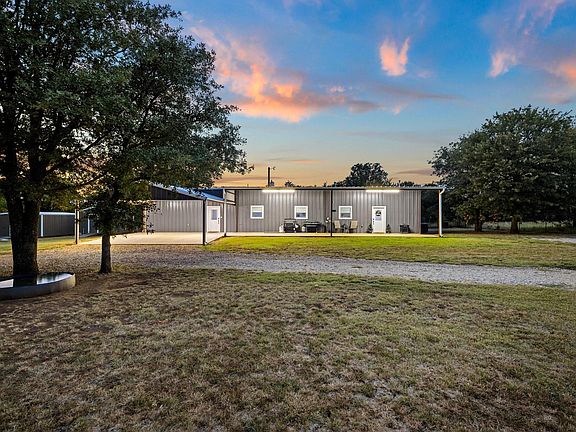 Discover country living at its finest in this stunning 4-bedroom, 2-bathroom barndominium nestled on 5.29 private acres outside city limits featuring two fully insulated storage sheds with electric for all of your storage or work shop needs. This unique property combines rustic charm with modern convenience, featuring a gated entrance for ultimate privacy and security. The spacious primary bedroom suite offers a peaceful retreat, with an impressive custom closet system that transforms organization into pure indulgence. The walk-in pantry keeps your kitchen organized and efficient. Entertainment enthusiasts will appreciate surround sound hookups in both the living area and primary bedroom. When the power goes out, you'll stay comfortable with the automatic propane generator. The generous lot size provides endless possibilities for outdoor recreation, gardening, or simply enjoying the tranquil countryside setting. Located near Historic Downtown Denison and beautiful Lake Texoma, you'll have easy access to dining, shopping, and water activities while maintaining your peaceful rural lifestyle.