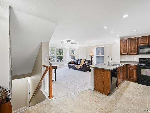 Welcome to this charming two-story cottage-style home nestled in the heart of the beloved Belle Creek community. From the moment you arrive, the welcoming front porch invites you to slow down & sip your morning coffee. Step inside & experience timeless elegance blended with thoughtful updates. Architectural details and charming built-ins are found throughout, while brand-new carpet adds fresh comfort underfoot. The open-concept floor plan is perfect for both everyday living and entertaining. The spacious eat-in kitchen features a peninsula with seating, warm oak cabinetry, a pantry, and seamless flow into the inviting living room. Crown molding and rich trim work frame the space, while a wall of windows fills the room with golden natural light. A rare main-level powder room, accented with classic wainscoting, adds both function and flair. Upstairs, the primary suite offers a peaceful retreat with its ensuite full bathroom and walk-in closet. Two additional bedrooms—one with gleaming hardwood floors and built-in shelving—and a full bathroom ensures comfort and convenience for all. And a true surprise lies below. The finished basement unveils a luxurious second primary ensuite with French doors that open into a private haven. Pamper yourself in the spa-like bathroom featuring heated flooring, jacuzzi tub & designer finishes. A cozy entry space with hardwood floors makes for an ideal office or sitting area & includes the laundry. Step outside to a sweet backyard with a grassy area and three fruit trees—your own little orchard to enjoy. With an attached one-car garage and NEW updates galore - interior paint (2025), roof w/ impact resistant shingles (Oct 2024), hot water heater (1.5 years new), newer exterior paint, whole house fan, lighting, pre-wired for A/C, and more - completes this home. Enjoy tree-lined streets, pocket parks, & access to the Belle Creek Family Center with fitness and rec facilities. This home is more than a place to live—it’s a place to belong.