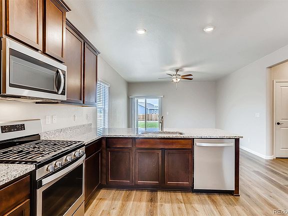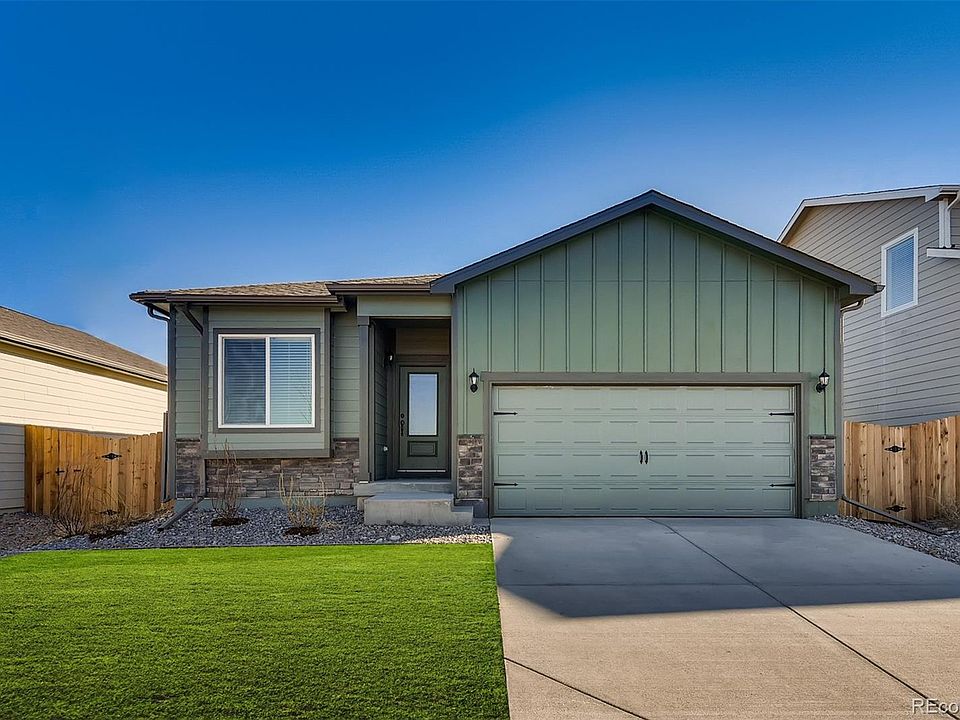 Make first impressions count with this beautiful new-construction home in the Second Creek Farm community in Commerce City. This single-story, three-bedroom, two-bath home is bursting with character inside and out. The dining room is located near the front of the house and is an ideal space for family meals. The kitchen opens to the family room, creating a spacious entertainment area. The master bedroom suite is the perfect place to retreat to, with an en-suite bathroom with an enclosed shower and soaking tub and a large walk-in closet. Another highly coveted feature of this home is the covered patio. All upgrades come included in this home, such as quartz countertops, stainless steel Whirlpool brand appliances, Wi-Fi-enabled garage door opener and more. Home pictured is representative of the property that is being built.