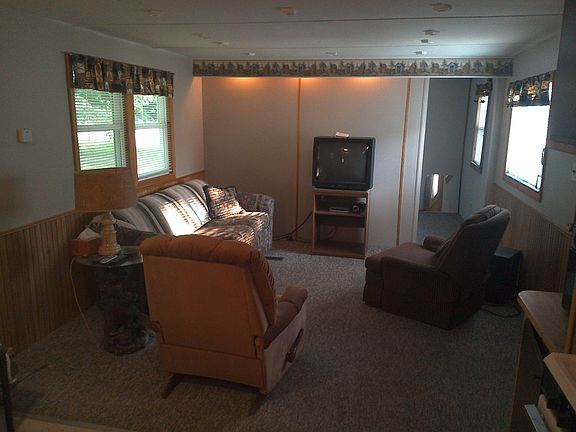Great Multi-Family Home located on a nice lot next to Harrietta private air strip. One bedrooms with kitchen,dining area and screen porch .features a stone fireplace with woodstove insert and central air . Connected by covered breezeway to a 2 bedroom mobile with kitchen, living room and bonus room which could be used as an extra bedroom. Attached to the mobile is a 15x20 garage. Property features several water and electric hook-ups for campers. 24x52 pole barn has a drive thru doors that's great for snowmobiles. 16x18 outbuilding with electric would make a great bunk house! Fire-pit area, asphalt turn around drive. It's a great getaway for hunting, fishing, atv and if you own a plane you could park in your back yard.