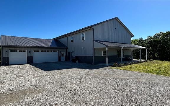 Custom Built New Construction Home on 25 Acres Located just 30 short minutes North of Kansas City & South of St. Joseph, stands this custom built Barndominium on 25 acres. Construction was recently completed in August of 2021. The house is a whopping 5,300 sq. ft. and consists of 5 bedrooms and 3.5 bathrooms. From top to bottom, this home offers custom features and finishes. The kitchen is loaded with custom built Knotty Alder Cabinets and Calcutta Quartz countertops. The kitchen provides more than enough space to prepare a feast and host a party as it is open to the dining room and living area. Right off of the kitchen is a walk in pantry that provides additional storage. The living area boasts a stacked stone fireplace that runs 22' to the corner of the ceiling. As your eyes see the corner, you'll notice stunning tongue & groove on the vaulted ceiling, running to the peak, measuring 34'. The master suite is on the main level and serves as the show stopper! Nearly 1,000 sq. ft., this suite provides ample amounts of space! The room boasts a walk in closet with built-ins everywhere. This closet is the size of most bedrooms. The master bathroom has a double vanity, tub & custom walk in tile shower with two heads. Features include: 5,300 sq. ft., 5 bedroom 3.5 bathroom, 25 acres, custom cabinetry & countertops throughout house, all electric, stick built, 10 mini-splits, hardwood flooring on main level, 9' ceilings on main level & 8' on second level, 22' stacked stone wood burning fireplace, 34' vaulted ceiling, open concept, 3 car attached garage, wrap around porch.