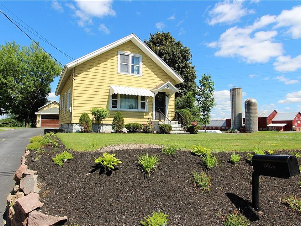 3 bedroom, 1 and a half bath Cape Cod just outside village of Croghan. Eat in kitchen w/ appliances included. Original hardwood in dining and living room refinished in 2013. Master bedroom and Small bonus room that could be used as nursery or office are on 1st floor. 2 additional bedrooms upstairs with half bath. Original built-in cabinets throughout home offer plenty of storage room. Knee wall and basement for storage. Baseboard hot water heat fueled by wood or oil. Detached 1 car garage with wood stove heated attached work area and loft storage. Landscaping and deep yard with additional storage shed. The character of this home makes it a MUST SEE!