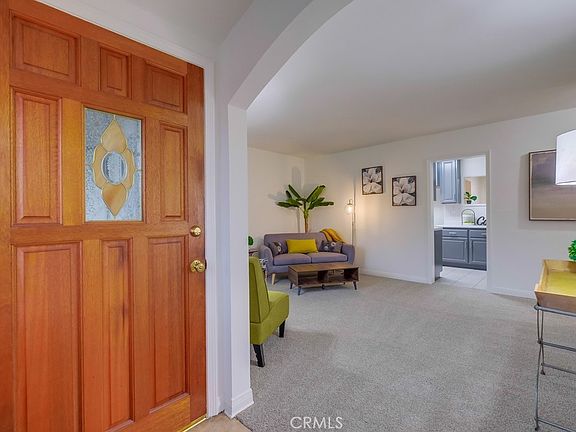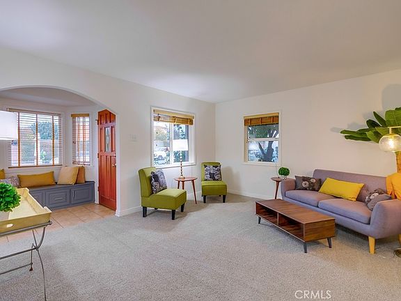 Welcome to this charming Bellflower home! When you step inside you’re greeted by a cozy window seat...a perfect spot to enjoy your morning coffee or a good book. A graceful arch leads into the sunny living room. Fresh interior paint throughout the home. Laminate wood flooring and new carpet in living and bedroom areas, tile in high traffic areas such as kitchen and bath. Title records show it as 4 bedroom, but one of the rooms does not have a closet. Convenient, inside laundry room with storage cabinets, counter and large sink. Generous sized backyard with mature plants, lush lawn and access to the 2 car garage. In the front yard there is additional parking in the carport adjacent to the front door (can also be used as a covered patio). Quiet neighborhood with nearby access to 605 and 91 freeways.