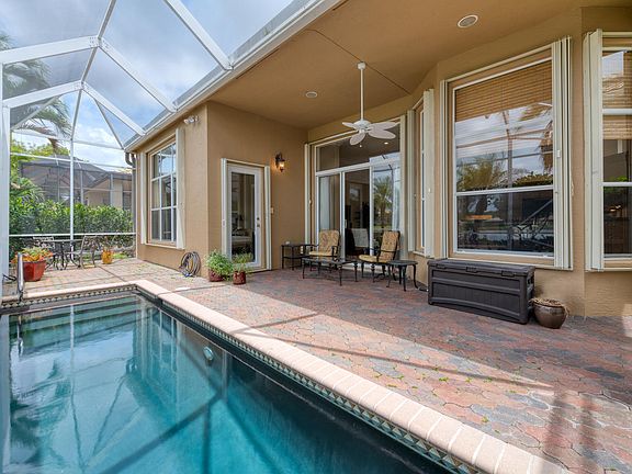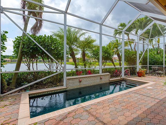 This 3 bedroom, 2.5 bath home boasts spectacular lake views with tropical landscaping and a custom, fully screened-in pool. The classic, elegant interior has been recently upgraded with new paint in relaxing neutrals, durable tile flooring throughout the living spaces, and an open kitchen with a large center island, granite countertops and a breakfast bar leading to a family room and formal dining room. The master bedroom is spacious with custom closets and double crown molding. The home also features a rotunda with 13' coffered ceilings. Windows has Accordion shutters. Hoa is paid quarterly in the amount of 1693 dollars. 2020-07-17