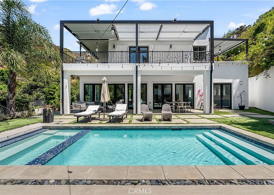 The meticulously updated backyard creates a serene oasis with a beautiful pool, a stylish outdoor entertaining area complete with a built-in grill, and a custom fire pit. The large side driveway offers ample parking, including space for an RV. Enjoy easy access to hiking, mountain biking, and equestrian trails at nearby Franklin Canyon Park, or immerse yourself in the vibrant scene on the Sunset Strip and Hollywood Blvd.