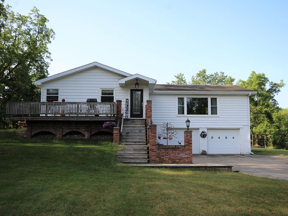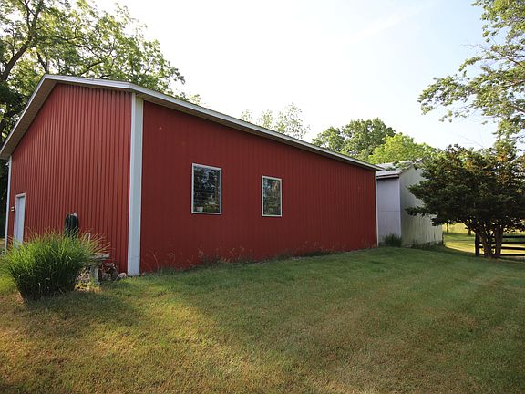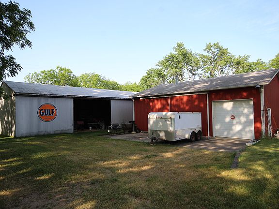 6 Acres, 2 pole barns, Little Portage River frontage and gorgeous custom kitchen! You'll love the open living room/dining area with beautiful maple flooring and 2 picture windows overlooking the scenic river. Kitchen features granite countertops, white cabinetry, pantry cupboard & appliances. Custom window treatments in living room & kitchen ($6,000). Large primary suite with 2 closets and updated private bath. Main floor laundry and newer main bathroom. Relax in the 11.5 x 20 3-season porch or on the wrap-around wood deck! Rheem high-efficiency furnace. Excellent heated & insulated workshop in 30 x 40 red barn with electric, water & concrete floor. Plenty of storage in the 28 x 64 silver barn. View deer, turkey & wildlife. Enjoy this fine home and peaceful country setting today!