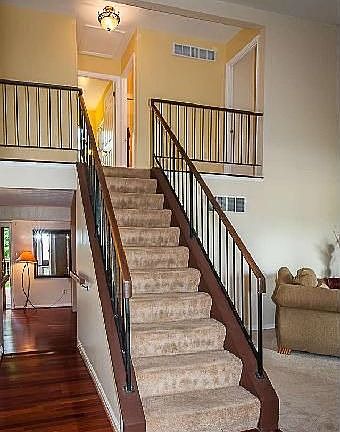 Beautiful brick front 4 bedroom home in Columbia featuring neutral colors, beautiful hardwood floors, spacious LR w/soaring vaulted ceiling, formal DR w/accent molding, family room w/brick FP that opens to deck, eat in kitchen, 4th bedroom on main level w/attached bath and private entrance. Owners suite w/private bath. Lower level recreation room. Deck overlooking yard. New heat pump & A/C unit.