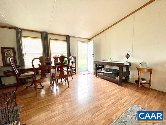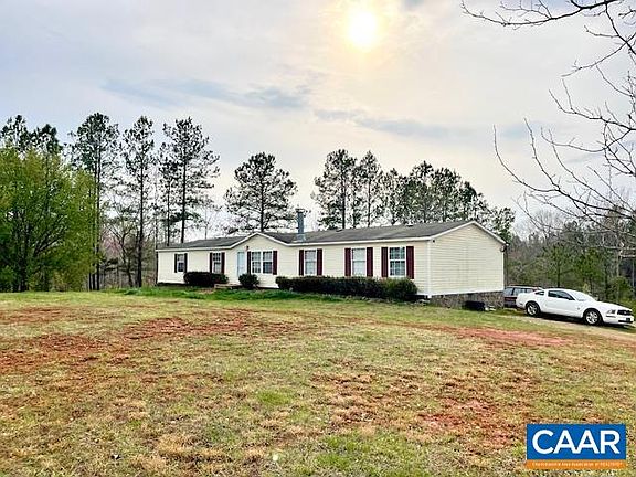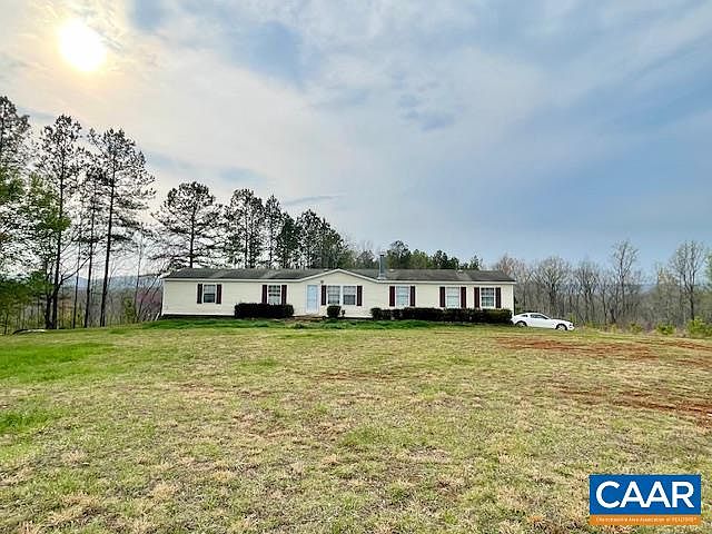 8.61 acres in Southern Albemarle with over 960 feet of state road frontage and a large one level home. Move right in and consider the possibilities for agriculture or development. Open floor plan with over 1700 sqft features; a living room, family room, spacious kitchen, laundry room, 4 bedrooms and 2 full baths. Primary bedroom features a sizeable sitting area, huge walk-in closet the size of a small room and large bathroom with double vanities and deep soaking tub. The HVAC is just a few years old. Large deck accessible from kitchen, overlooks backyard with wooded and partial mountain views as well. The house is set on a stone foundation, offers plenty of parking, and EXCELLENT road frontage. 6 miles to Scottsville.