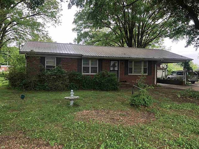 Great Starter Home! 3 bedroom, 1 bath brick home located in small community! Approx. 6 miles to river - home has some hardwood, solid pine ceilings. Fairly new metal roof and central unit. Level yard with beautiful trees, nice deck, garage storage building. A great place to live, centrally located to everything!
