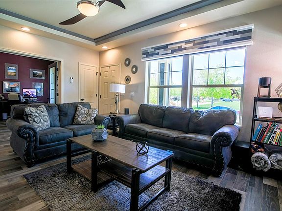 Large two story home with covered front porch sits across from a neighborhood park complete with playground. Open, main floor plan showcases wood-look plank tile flooring throughout seamlessly combining living, dining, kitchen and study areas of home. Study sits behind french doors opposite living room featuring tiled entertainment area and coffered ceiling. Large dining and kitchen areas combine for effortless entertaining. Kitchen boasts 42" ebony cabinets, center island and stainless steel appliances! Darling mudroom welcomes those entering from the 2-car garage. Upstairs a large bonus room situated between the master and 2nd and 3rd bedrooms creates a perfect space for family time prior to retiring for the night. Spacious master features his and her walk in closets, an en-suite 3/4 bath with a walk in shower and floor to ceiling tile. Upstairs laundry conveniently completes the upper level. Back patio off kitchen with newly sodded yard provides convenience for cookouts.