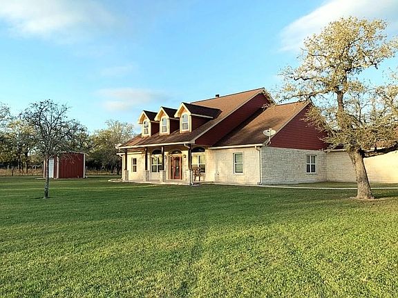 This custom limestone home offers 4 bedrooms, 2 bathrooms, and an unfinished second story ready for expansion. It sits on nearly 20 acres with cross-fenced pastures and plumbing for livestock troughs, plus a 30x40 shop with covered RV parking and 50-amp hookup. The shop also features a half bath, kitchen setup, and entertainment space. A separate guest house with its own electric meter, water well, septic, and address makes this ideal for multi-family living or rental income. Centrally located between Goliad, Victoria, and Cuero, and within 130 miles of Corpus, San Antonio, Austin, and Sugar Land. The insulated well house has labeled shutoff valves for all plumbing, adding peace of mind for travel or storms. New appliances in the main home, no pets, no smoking. This move-in ready property offers modern amenities, privacy, and room to grow—perfect for those seeking a peaceful retreat in the heart of Texas.