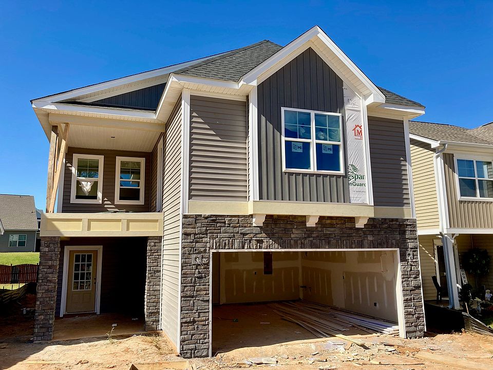 The Julian is a two-story, Craftsman-style home with three bedrooms and two and a half baths and large loft. Beautiful looking home from outside with tall stone columns and stone around garage. When you enter the two-story foyer it leads to a large family room and open kitchen. The thoughtfully designed kitchen features a large island with bar top seating. Kitchen with white cabinets, hardware, gas stove and stainless steel appliance package and tons of room for entertaining. Formal dining area with arches, coffered ceiling and judge's panels. This home has Sherwin Williams repose gray throughout. Natural Gas fireplace in family room and sunroom right off of family room great for enjoying the afternoon sun. Also downstairs a coat closet, powder room and an organizational space are all located near the garage entry. Organizational space great for office, workout room, playroom, pet room or anything else you can imagine. Head upstairs on the hardwood staircase and you come to two staircases. One leads you to master suite the other to the loft and additional bedroom. The private upstairs primary suite features a sitting room, large bath, dual walk-in closets and a pass through to the laundry room. The secondary bedrooms and a large loft are also conveniently located upstairs. Laundry room has additional cabinets and countertop, hall bath two also has dual vanity and luxurious vinyl plank flooring throughout the downstairs
