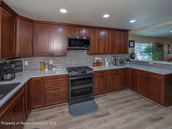 Are you looking for a home that you can just move into and enjoy? You will love this gorgeous home close to the Middle School, Sandrock Elementary School and within walking distance of the High School! This home features lots of room to spread out. It's beautifully updated throughout with new flooring, gorgeous kitchen with top of the line cabinets, new appliances, quartz countertops & updated backsplash. Large master bedroom upstairs features a spa like 5 piece bath w/jetted tub and beautifully tiled shower. 2 bdrms on the main level and a more than partially finished basement that has worked well for additional living quarters & could be used for offices, workout room, craft room, man cave or finish out for separate mother-in-law unit (bsmt has its own entrance). This home comes furnished with high end furnishings and ready for the next owner to Airbnb, use as a 2nd home, long term rental or owner occupant! Lots of extra parking in the rear for camper, toys, trailers, etc. Great views of the mountains!