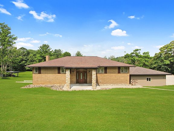 Outdoor man's paradise, come home to everything you would want. Ranch home 3 bedroom, 2.5 bathroom, 3 stall detached garage on 5.23 acres(+/-) close to town. Spend time at the archery range or rifle range or maybe the pond. Smoke your own meat & cheese outdoors. Plenty of space to entertain under the pavilion. Additional detached 2 stall garage and RV storage shelter.