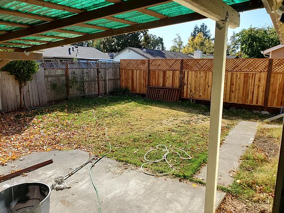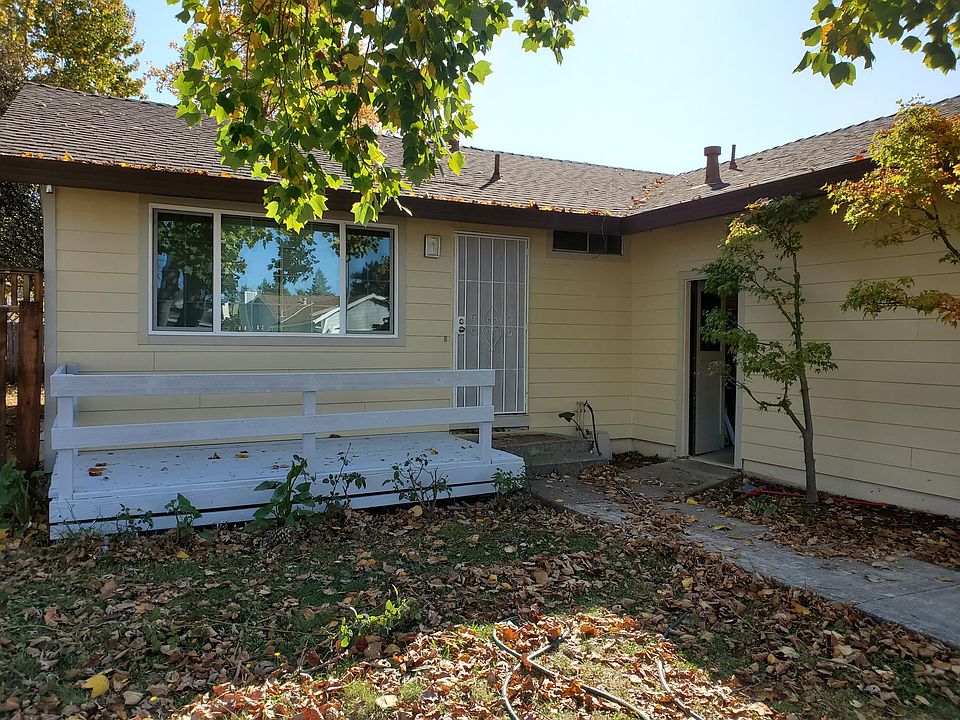 Large front yard with deck and large back yard with covered patio. Two car garage and ample parking in front of house. Appliances include refrigerator, stove and microwave. There are hookups in the garage for both electric and gas washer/dryer. No smoking or vaping of any substance. No co-signers. No pets. Rent is month to month, renter pays water/sewer, electricity, gas and garbage. In order to be considered for this property, perspective tenants MUST apply and complete application and credit check through the Zillow portal.