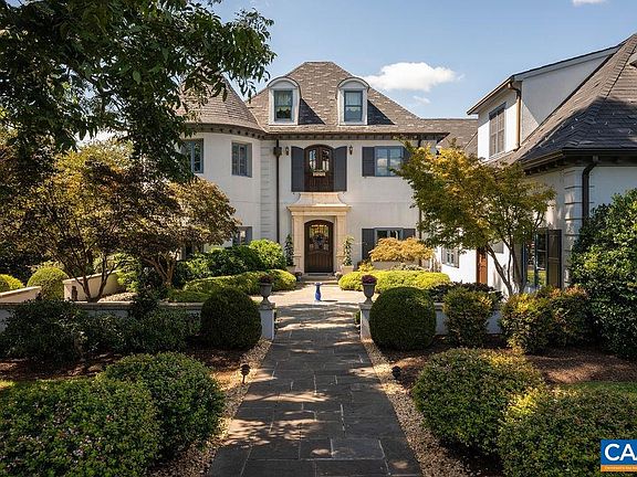 A country French estate custom built in 2003 and sited on 24 acres in the heart of Ivy less than a mile from Duner’s restaurant. A combination of timeless charm and modern luxury with soaring ceilings, a generous primary suite, home office, wine cellar, guest quarters, and three levels of well-appointed living space. The main floor features a marble-tiled foyer which leads into beautiful dining and living rooms. An open kitchen and family room seamlessly flow with direct access to a screened porch with fireplace and onto a balcony overlooking the large private pond, rolling countryside, and landscaped surrounds. The second level provides an unmatched, interconnected owners suite, along with two bedrooms with ensuite bathrooms, plus a bonus room. A terrace level with a myriad of amenities: wine room, family room, bar/game room, kitchen, bathrooms, bedroom, and a hidden room. Two unique and well-conditioned outbuildings offer endless opportunities (art or yoga studio, office, party barn, full gym, kid paradise) with the original barn renovated and ripe for a return to horses. Incredible location in western Albemarle, only six miles from the University of Virginia.
