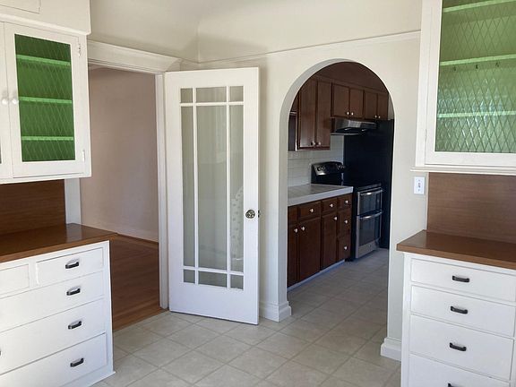 Bright and private 3 bedroom 2 bathroom family home conveniently located close to schools and shopping. This Spanish Revival style house includes 1,880 square feet of living space, large yard and two-car garage with an attached bonus work shop. Property features: Classic, old-world living room with wood floors and fireplace. Dining area with wood floors and built-in display cabinet. Breakfast nook. Galley kitchen with tile counters, lots of cabinets, refrigerator, electric range/oven and dishwasher. Laundry room with utility sink, washing machine and electric dryer. All 3 spacious, light-filled bedrooms feature walk-in closets, blackout blinds and curtains. 1 Jack & Jill bathroom with a shower and vanity unit. 1 large bathroom with tub/shower, vanity unit and substantial storage. Central heating throughout the home. Gated side patio that leads to the back yard. Uncommonly large backyard with a brick patio and lawn. Detached, two-car garage gives easy access to/from the alleyway. Covered potting area adjacent to garage. Rent includes basic gardening and sewer. Two pets, with excellent references, will be considered. Owner pays for sewer and basic gardening. Tenant pays for all other utilities: gas, power, water, trash & recycling service, cable, etc. No pets over 30 pounds. No smoking.