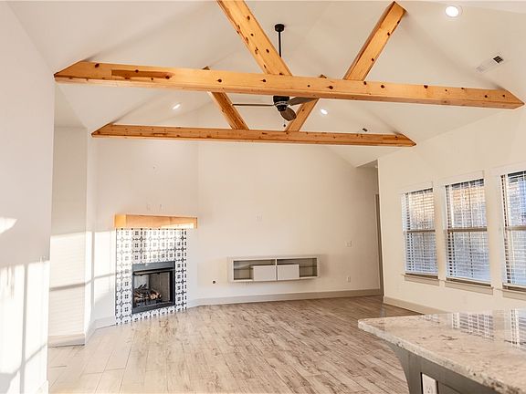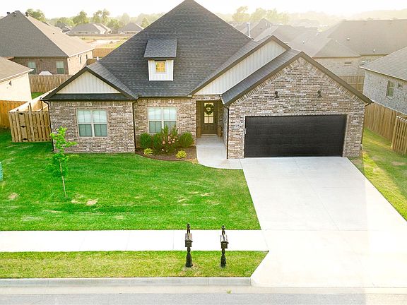 Welcome to 949 Laux Ln, Pea Ridge, AR! This well-maintained home offers 4 beds, 2 baths, and 2020 sq ft of comfortable living space. The grand foyer entrance welcomes you with a spacious cathedral ceiling and attractive wood beam accents. The modern kitchen features a large island, floating shelves, and stainless steel appliances. Enjoy the convenience of the split floor plan, providing privacy for all. Step outside to a covered back patio and a serene atmosphere with the privacy fence. Take advantage of the community amenities, including a playground, ball field, pond, and pavilion. This thoughtful home design includes practical features like epoxy garage flooring, a mudroom, and abundant natural lighting highlighting the ceramic tile flooring throughout. The master bathroom offers double vanities and a beautifully tiled walk-in shower. Don't miss this opportunity to make this lovely property yours and experience modern living in a welcoming community. Arrange a viewing today!
