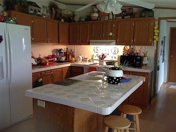 Waterfront home with lakeside deck to watch the sunsets. Located on a dead end street and is quiet. Large metal storage building has three bays, plus tall RV carport that can hold your big items. Large fenced yard is cross fenced. Perfect for dogs and children. It is move in ready. Located close to stores and restaurants. Property is Long Leasehold at $3,000 per year.