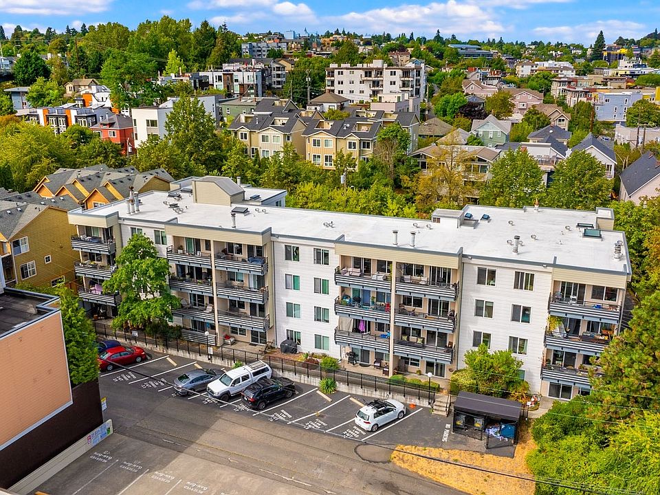 Discover your own oasis in the heart of Fremont! Just blocks to culinary delights, charming pubs, shopping adventures + a block to the Burke Gilman, this adorable unit offers fantastic views of the ship canal, Lake Union + Downtown!  The building boasts modern upgrades [exterior was redone in 2010, including roof, siding, decks + windows.  Yes, this intimate community is supported by a great HOA!] The unit has good space + great light, with a tranquil patio that expands the living space. Wander on foot to Fremont's bustling activities, kayak/paddle the canal, bike/walk/run the trail + when you have to go to work, enjoy an effortless commute to Google, Facebook, Amazon or South Lake Union. AMAZING NEW PRICE!!