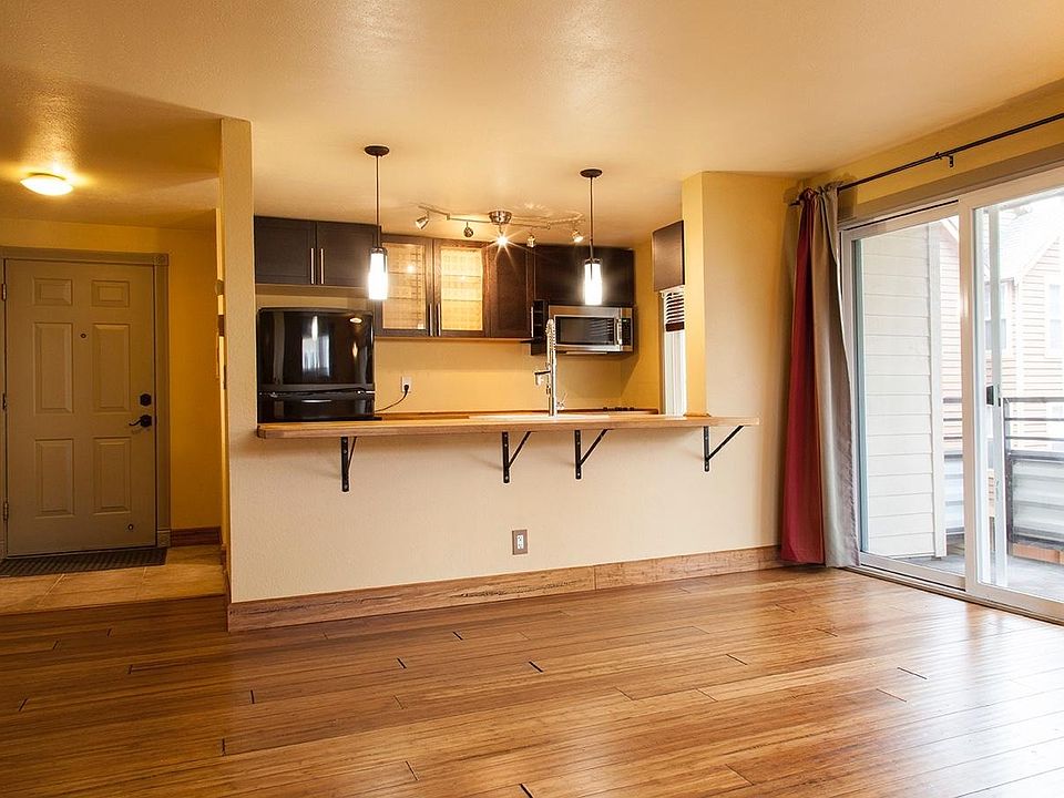 Available September 10! Enjoy living life in the dynamic Fremont neighborhood! This northwest two bedroom condo is complete with cool black appliances, wood floors and countertops, and a full size washer/dryer in the unit. One covered parking space is included as is a storage unit right outside your front door. The building is secure with a locking gate. You'll love the bright natural light from the third floor. Fremont is the iconic neighborhood of Seattle. Walk to coffee shops, Indie boutiques, pubs, and family owned restaurants. Hop on your bike and explore the ship canal or the Fremont Sunday market with food trucks, fresh produce and local art. The University of Washington is just minutes away as well and the Burke Gilman Trail. Easy access to I-99 and an easy commute to downtown Seattle, Amazon campus, Google, Tableau, and Microsoft Connector. No pets and no smoking, thank you. w/s/g included with rent. Tenant pays electric. Sorry, no pets.