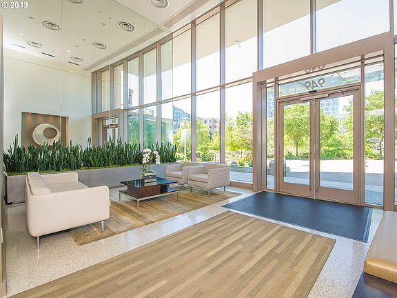 Gorgeous 5th floor, south facing condo with a view of the Willamette River and a deck that you can enjoy all summer long. This true 1 bedroom condo feels very spacious, with its open floor plan and high ceilings. Features include Soapstone countertops, wood floors, gas cooktop & laundry room with lots of storage and 1 deeded parking spot. Coffee shop in building, park across the street and lots of shops & restaurants within blocks.
