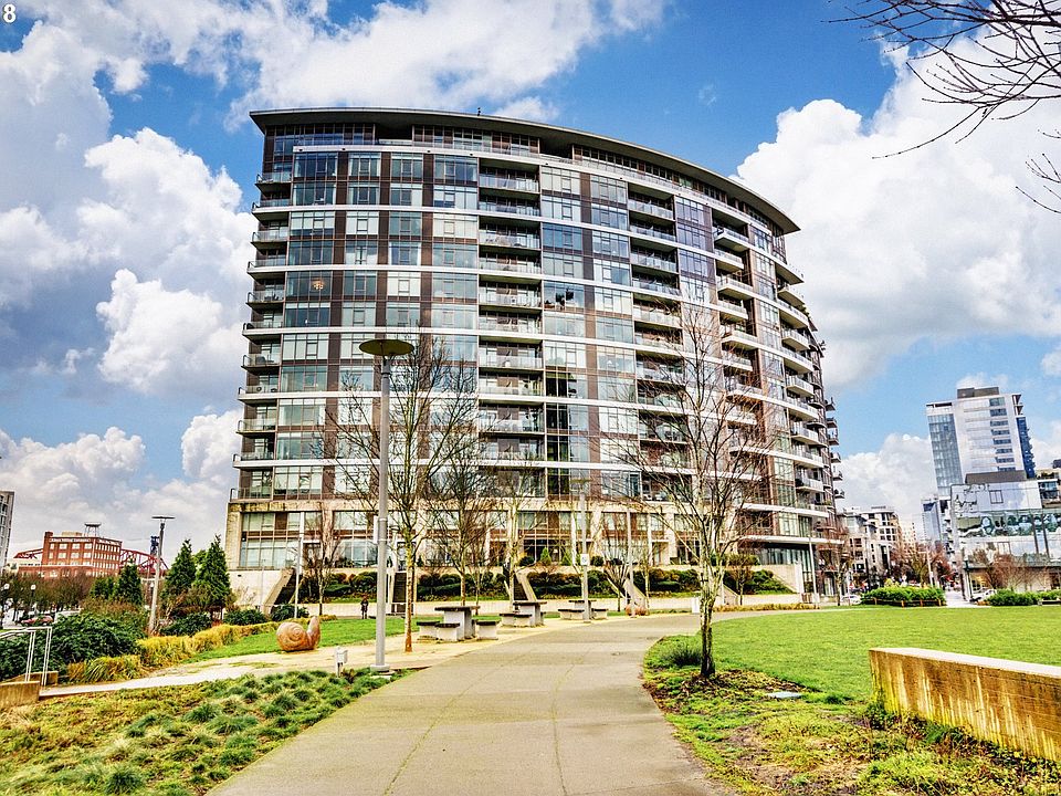 Panoramic Views from 11th Floor Two Bedroom Pearl District Condo! Floor to ceiling windows, glass door to balcony. Views of Willamette River, Fields Park. Ten-foot ceilings. Kitchen, granite, gas cook island, under cabinet lighting. Master Suite, walk-in closet with added built-ins. Second bedroom. Second full bath. Garage space and storage unit. Enjoy nearby Fields Park and everything the Pearl District has to offer.