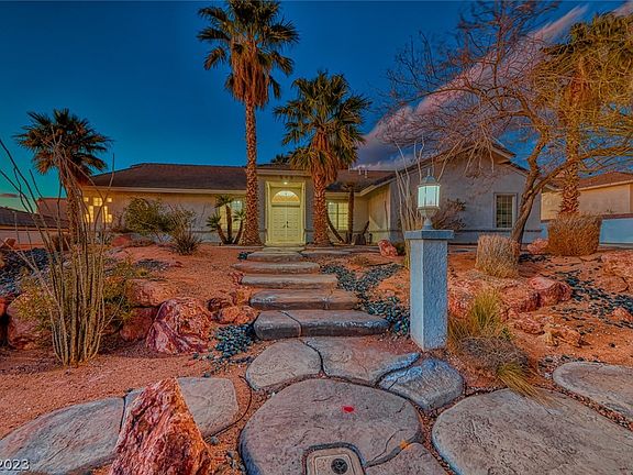 PANORAMIC STRIP, CITY & MOUNTAIN VIEWS!! Single Story Custom residence located in desirable Calico Ridge features Two Primary Suites! Kitchen is located in the center of the home w/island, ample storage & lots of windows to take in those fabulous valley views! Spacious living room w/fireplace, vaulted ceiling & patio access is to the right & formal dining room w/built in cabinetry is on the left*Identical primary suites w/sitting area are located on opposite sides of the home & each feature dual vanities/separate tub/shower & walk in closet w/cedar ceilings. Large laundry room w/sink, tons of cabinet storage & utility closet; washer/dryer are included. New tankless hot water heater, garage door openers & irrigation timer, too! Relax and enjoy the beautiful skyline on the rear covered patio w/ceiling fan & fountain!