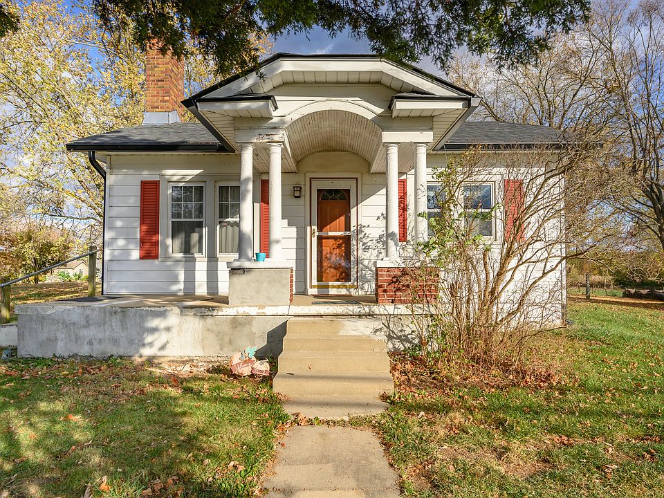 HOME in TRAFALGAR on 2 ACRES!! WALKING DISTANCE TO IC SCHOOLS, 2 Bedroom, 1 bath home with all the wide wood trim, new laminate wood floors, updated bathroom. Bonus space upstairs, and a large basement for good recreation space. Newer roof, and basement has been waterproofed. Woodburning fireplace in living room! Room for a barn (with proper permits) and pasture. Apple and pear trees on property. City water! On septic, but city sewer nearby. NO HOA! Being sold AS-IS!