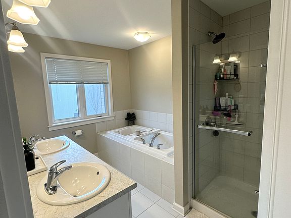 Welcome to 949 Stonewalk Drive located in Kingston's desirable East End, available February 1st! This beautiful three bedroom, two and a half bathroom home is Tamarack's Eton model. This home is located near many amenities including groceries, coffee shops, day care, schools, and many more. Home is a ten minute drive to downtown, less than five minutes to the highway, as well as a few minutes away from the new Waaban crossing. Home has been greatly taken care of and includes a fenced in backyard. Downstairs living area is all hardwood, and also includes a gas fireplace. Perfect to keep cozy in these chilly winters. Kitchen has overhanging kitchen island to make entertaining a breeze. Includes lighted walk-in pantry, gas stove, fridge, and dishwasher. Upstairs main bedroom has new carpets, walk in closet, and large ensuite bathroom with double sinks, shower, and separate soaking tub. Additional bedrooms are perfect for kids, entertaining, or office space. Laundry with with new washer and dryer also located on the top floor. Basement is fully finished and is being used currently as additional living space, and gaming area. There is also additional storage space underneath the stairs. Garage also comes with garage door opener. Includes three parking spots, one in garage and two in driveway. Home comes with AC, washer, dryer, gas fireplace, de humidifier, fridge, gas stove, and dishwasher. Utilities are separate and are the responsibility of the tenant. Utilities are separate and are the responsibility of the tenant.