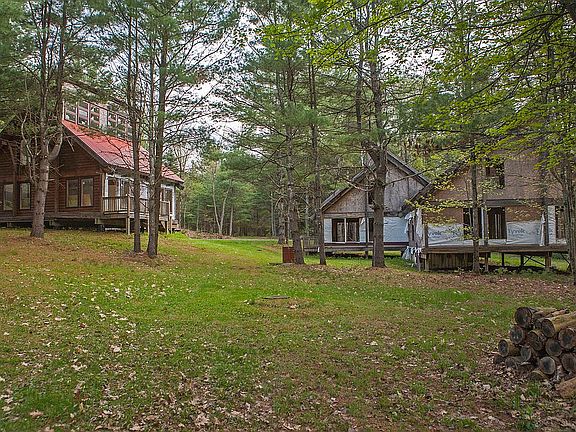 This is what the Catskills have always been about: summers by the pool, fishing and canoeing on the lake, evenings around the campfire with friends and family, enjoying the stars and the quiet. Designed by architect Nancy Copley, there are current two finished units out of 12 units (6 structures) planned. Two are finished and rent out for $225/night each. The second structure is almost finished and the third structure would need to be resumed. In addition, there are two vintage structures that could clean up nicely and and possibly be used in the summertime. There are also other vintage structures to be explored, revived, and/or removed. The 70+ acres have the beginnings of some really lovely trails and logging roads. A fantastic opportunity to own a summer getaway where you'll always have room for your friends and family! Nancy Copley was an architect who specialized in designs that reflect and harmonize with beautiful and unusual nature sites and you will appreciate that sensitivity in the design of these cottages and this setting.