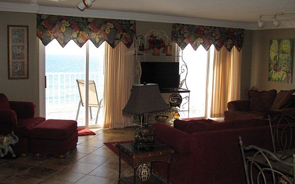 Rare opportunity for a deluxe style unit that has 3br square footage with an over sized living room. This corner unit has two balconies with open view of the Gulf and Lagoon. The large master bedroom lots of square footage and private balcony. Master bathroom has jetted tub/shower and separate vanity area with a walk-in closet. Tile runs thru most of the unit onto both balconies.