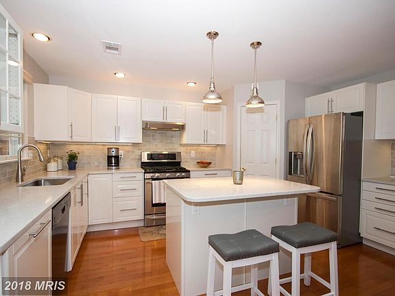 Beautifully maintained 3 Bdrm 3.5 Bath w/Open Floor Plan. Gorgeous kitchen w/island, Under cabinet lighting, SS App, Quartz counters, Subway tiles, Recessed lighting, Wood Floors on Main Level, Deck, Possible 4th Bdrm. in LL, UPDATES: Architectural Roof, Gutters, Downspouts, Water Heater, Kit./FR Patio Doors, Storm Door, Custom Cellular Blinds, 2nd fl. Carpet, Patio Shed, Home Warranty Included