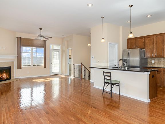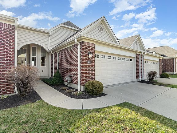 Desirable ranch condo offering one floor living in Ridgebourne at Lakemont! This Drees Quincy floorplan boasts 2 bedrooms, 2.5 bathrooms, 10' ceilings throughout the first floor, and so much more. Primary bedroom features ensuite bathroom with tile floor, double vanity, walk in shower, and large walk in closet. Kitchen has beautiful chestnut cabinetry, granite countertops, large peninsula, tile backsplash, and stainless steel appliances. Gas fireplace in living room with prewire for TV above. Covered rear deck showcases beautiful wooded views! Finished lower level features a second primary suite with ensuite bathroom and large walk in closet. Ample storage in lower level as well + walkout to covered concrete patio. Coveted two car garage. Schedule your private showing today!